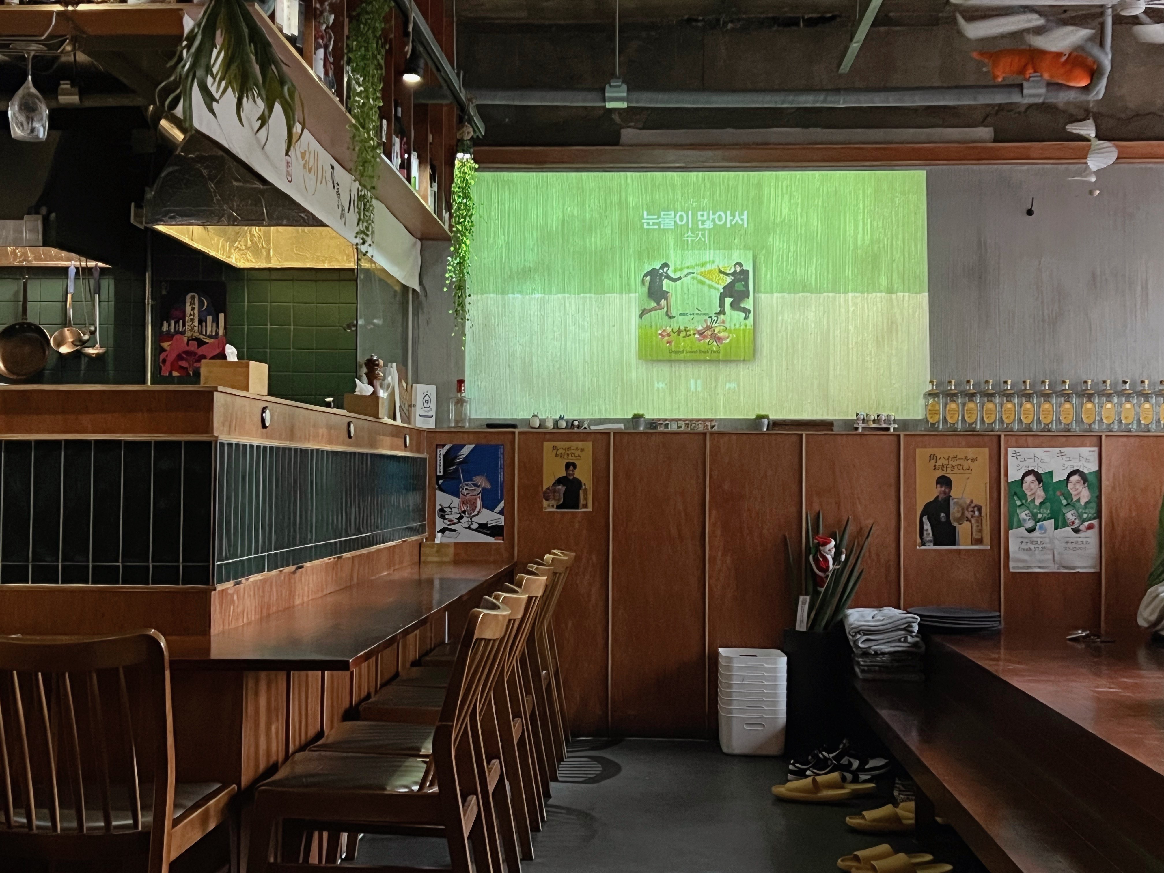 제 뒷편으로 요렇게 벽면에 화면을 띄우고 노래를 틀어주시더라구요